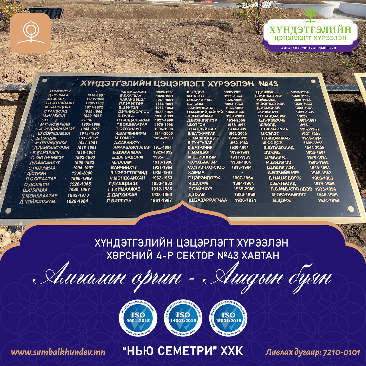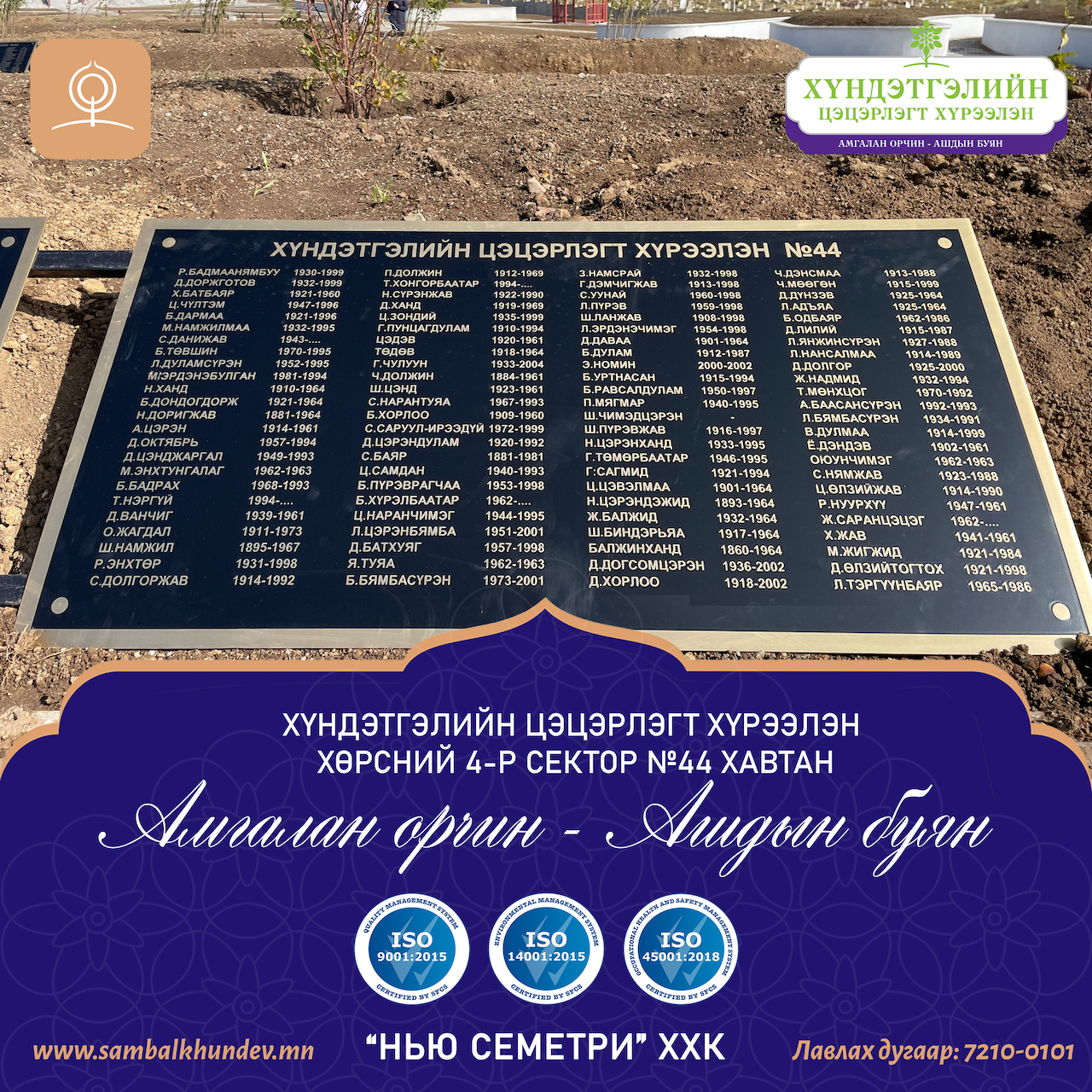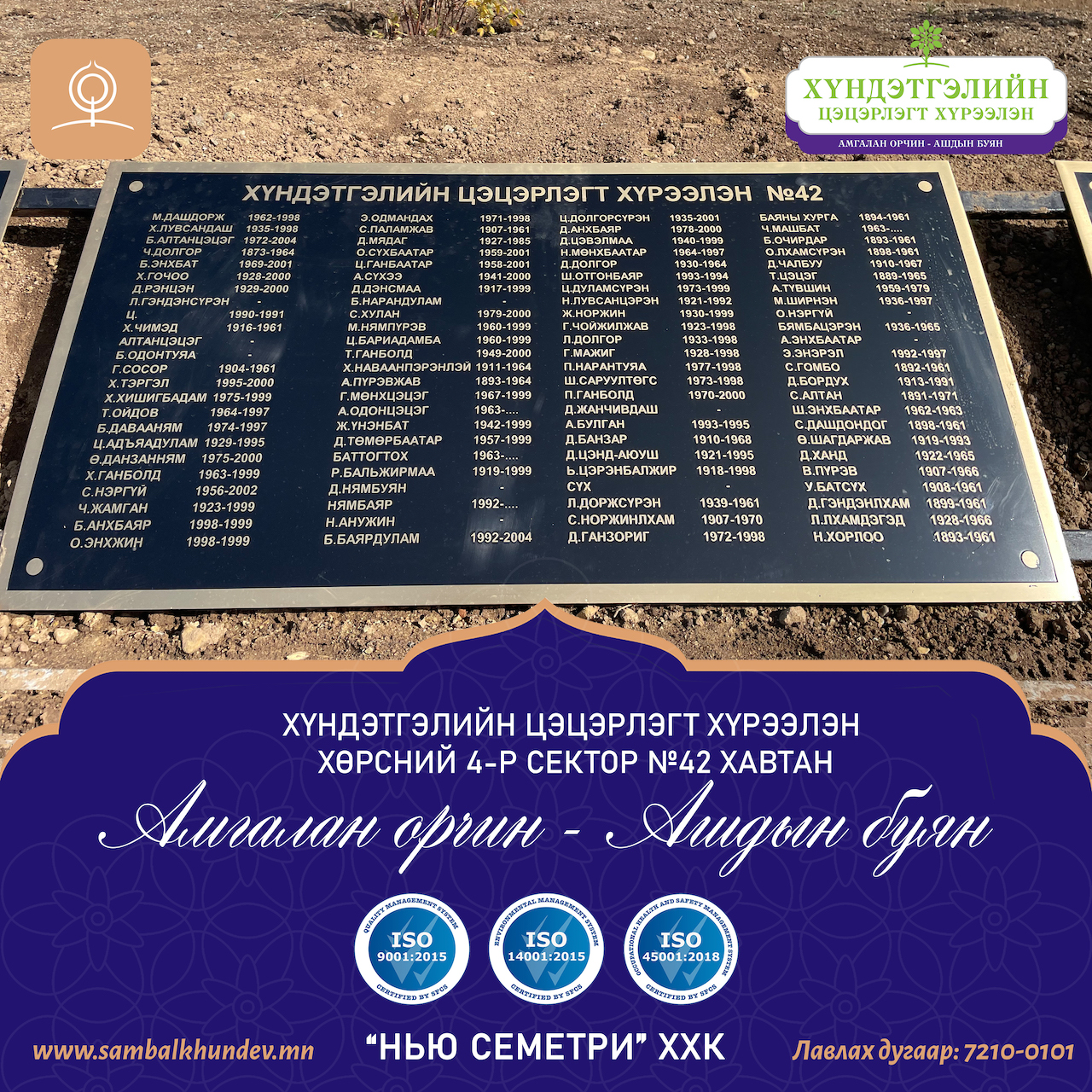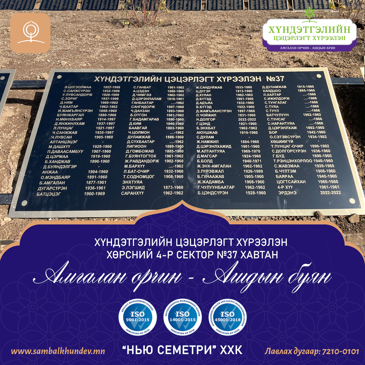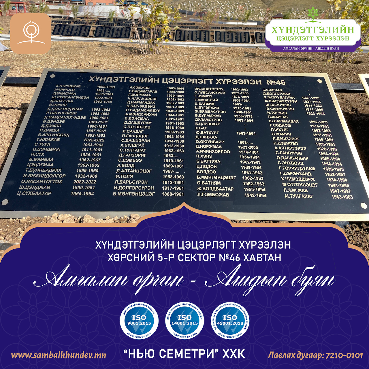САМБАЛХҮНДЭВ БУЮУ 70 ДАВХРЫН ОРШУУЛГЫН ГАЗАРТ БҮТЭЭН БАЙГУУЛЖ БУЙ ХҮНДЭТГЭЛИЙН ЦЭЦЭРЛЭГТ ХҮРЭЭЛЭНГИЙН ХӨРСНИЙ СЕКТОРТ ХҮНДЭТГЭН ЗАЛСАН БУРХАН БОЛОГСДЫН НЭРСИЙГ БҮРЭН БАЙРЛУУЛЖ ДУУСЛАА.