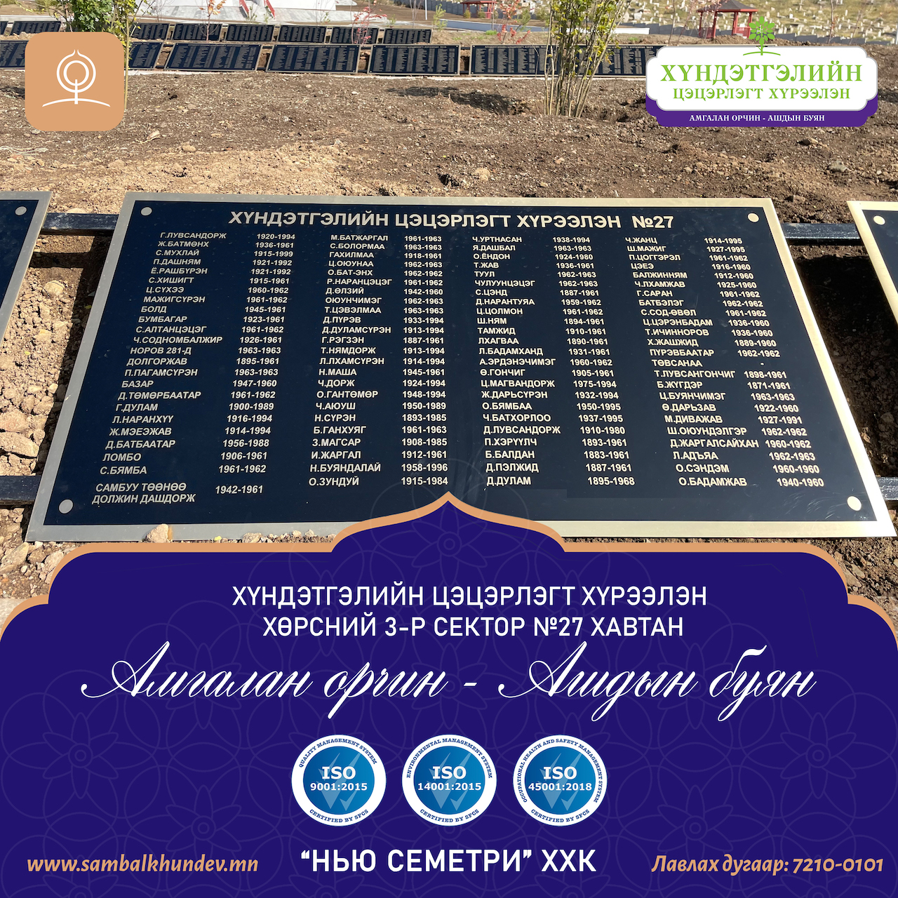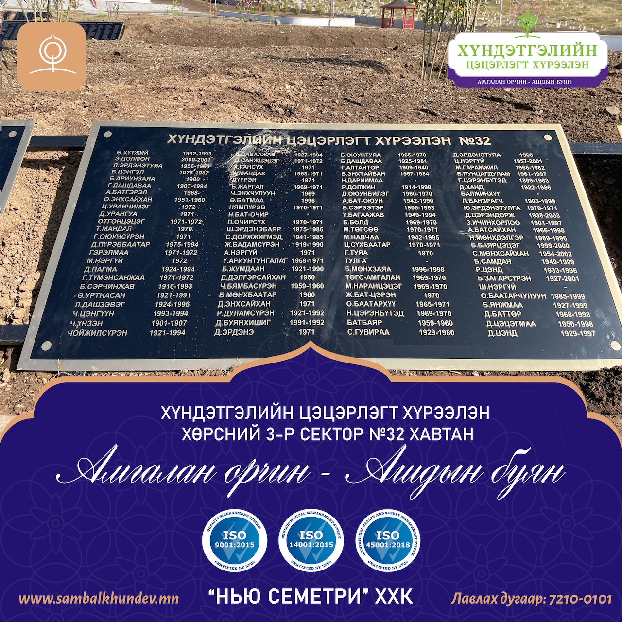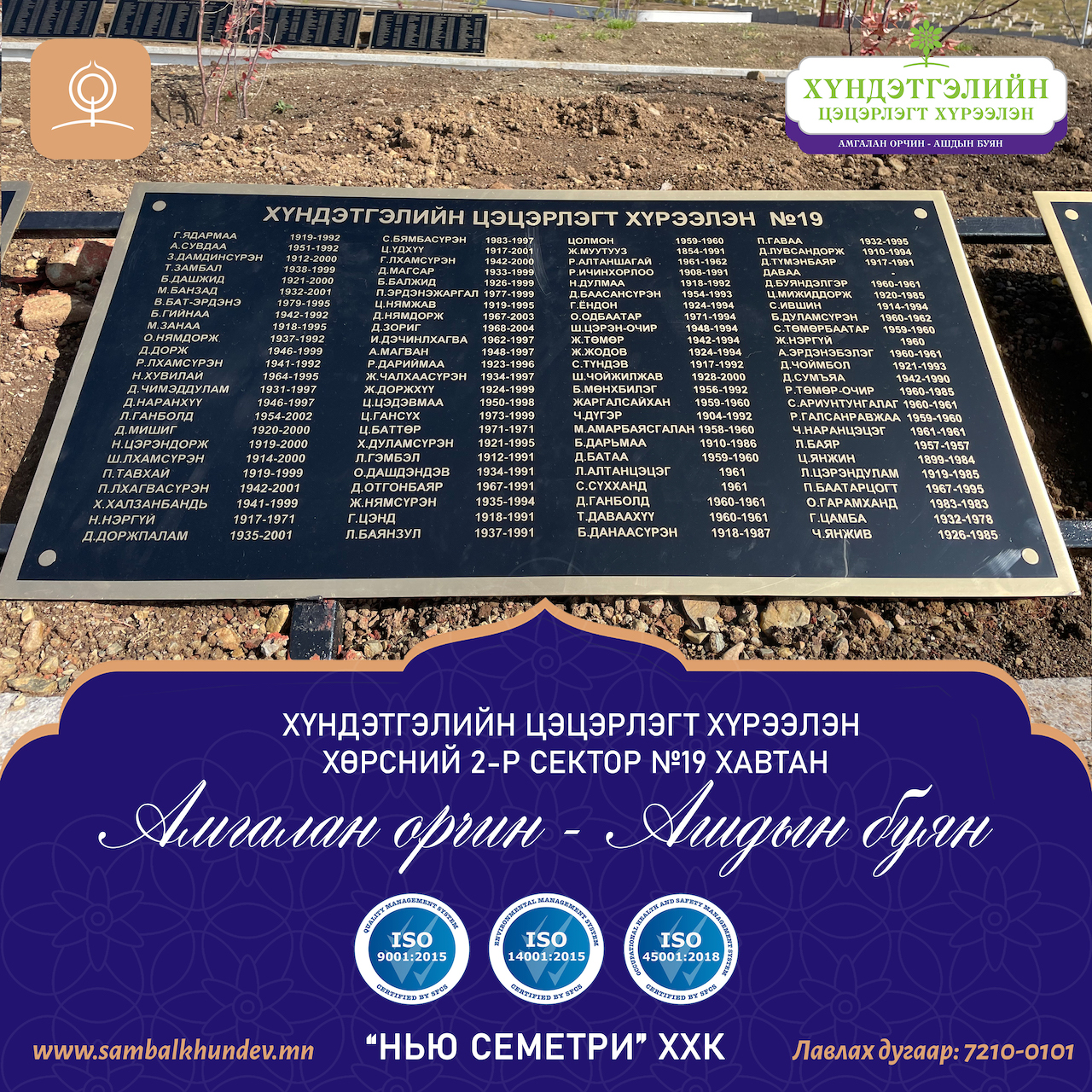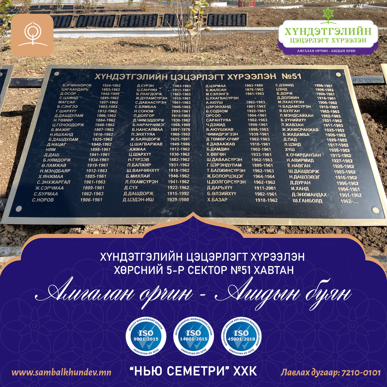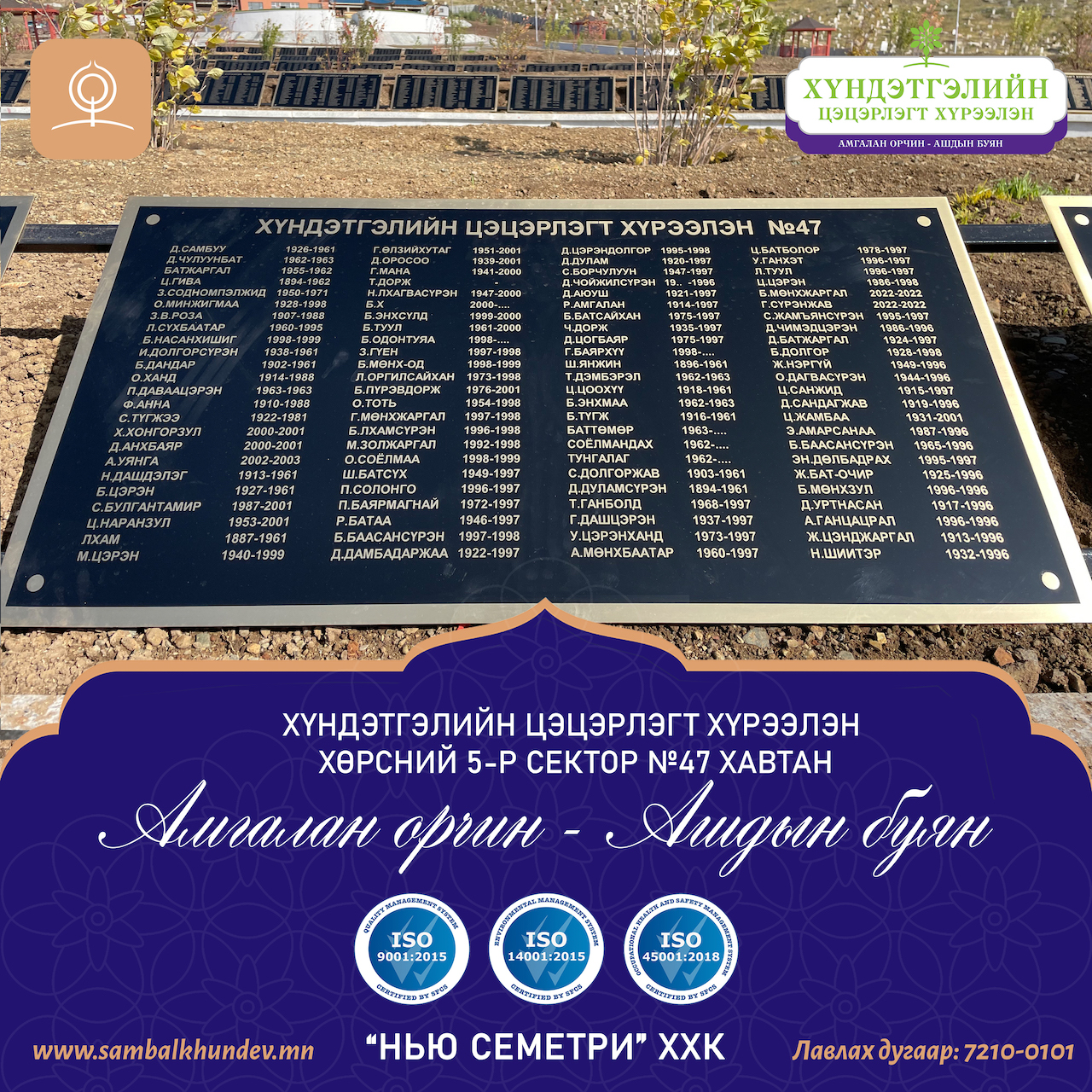 САМБАЛХҮНДЭВ БУЮУ 70 ДАВХРЫН ОРШУУЛГЫН ГАЗАРТ БҮТЭЭН БАЙГУУЛЖ БУЙ ХҮНДЭТГЭЛИЙН ЦЭЦЭРЛЭГТ ХҮРЭЭЛЭНГИЙН ХӨРСНИЙ СЕКТОРТ ХҮНДЭТГЭН ЗАЛСАН БУРХАН БОЛОГСДЫН НЭРСИЙГ БҮРЭН БАЙРЛУУЛЖ ДУУСЛАА.