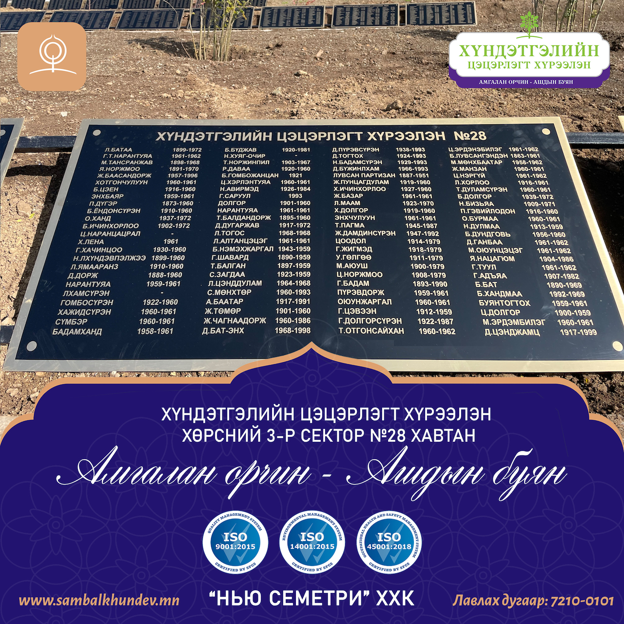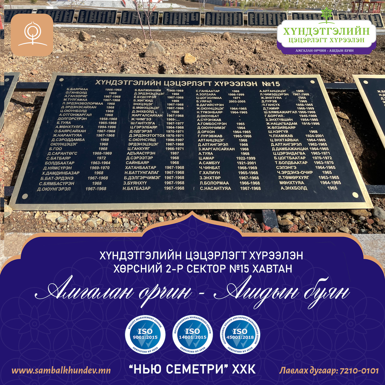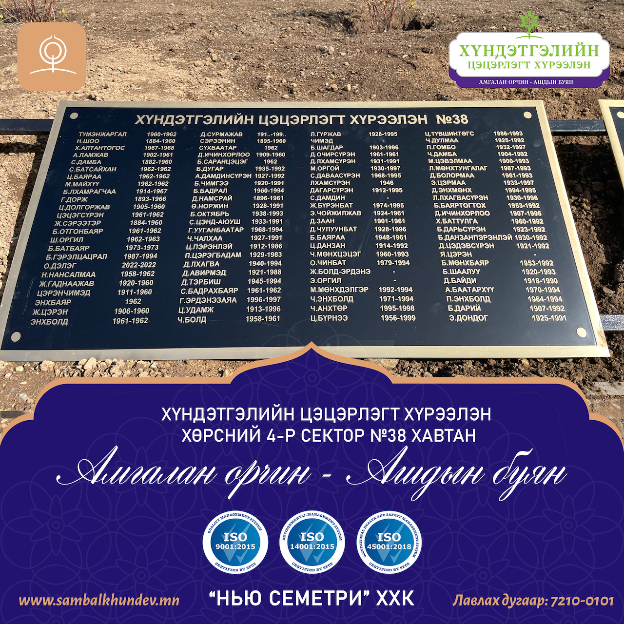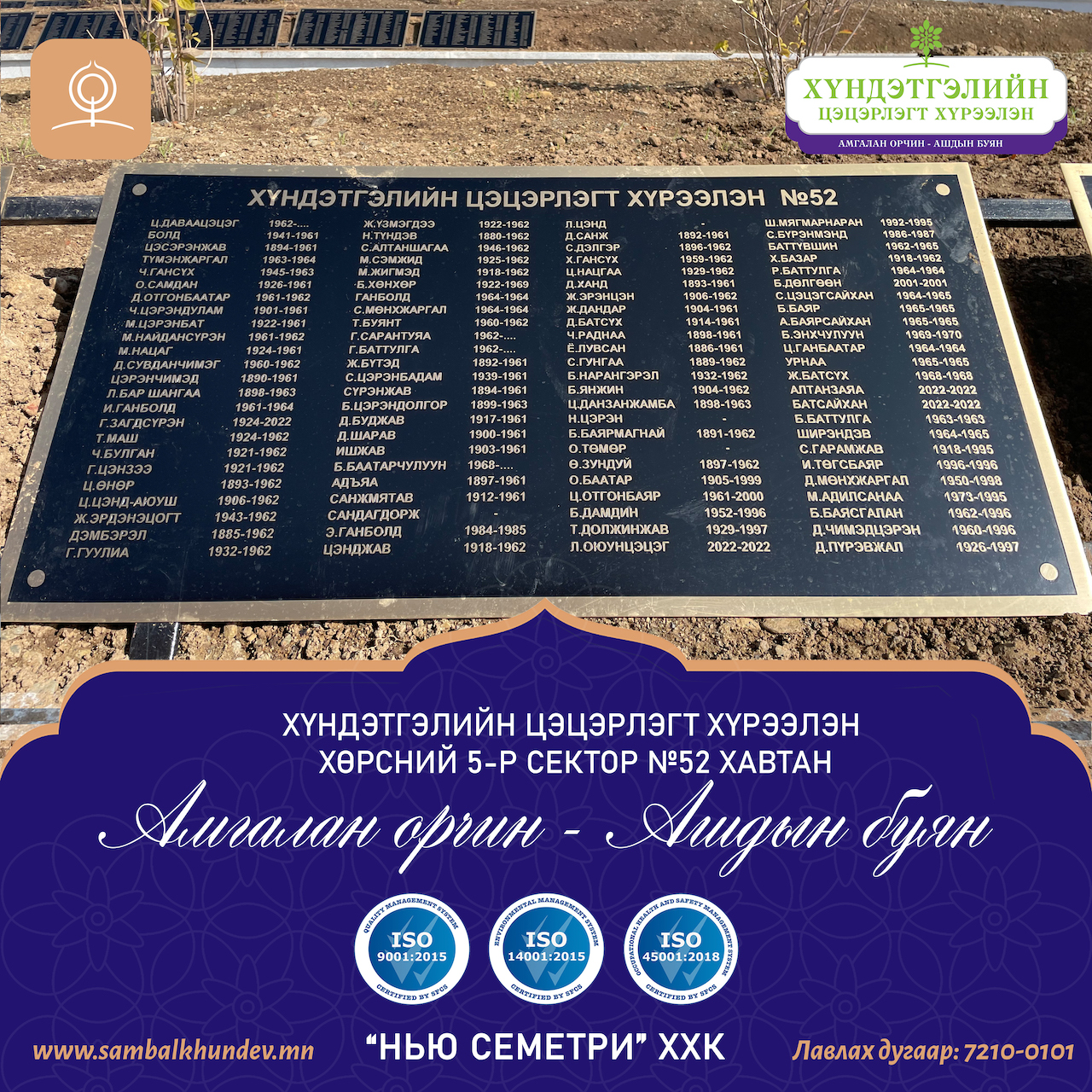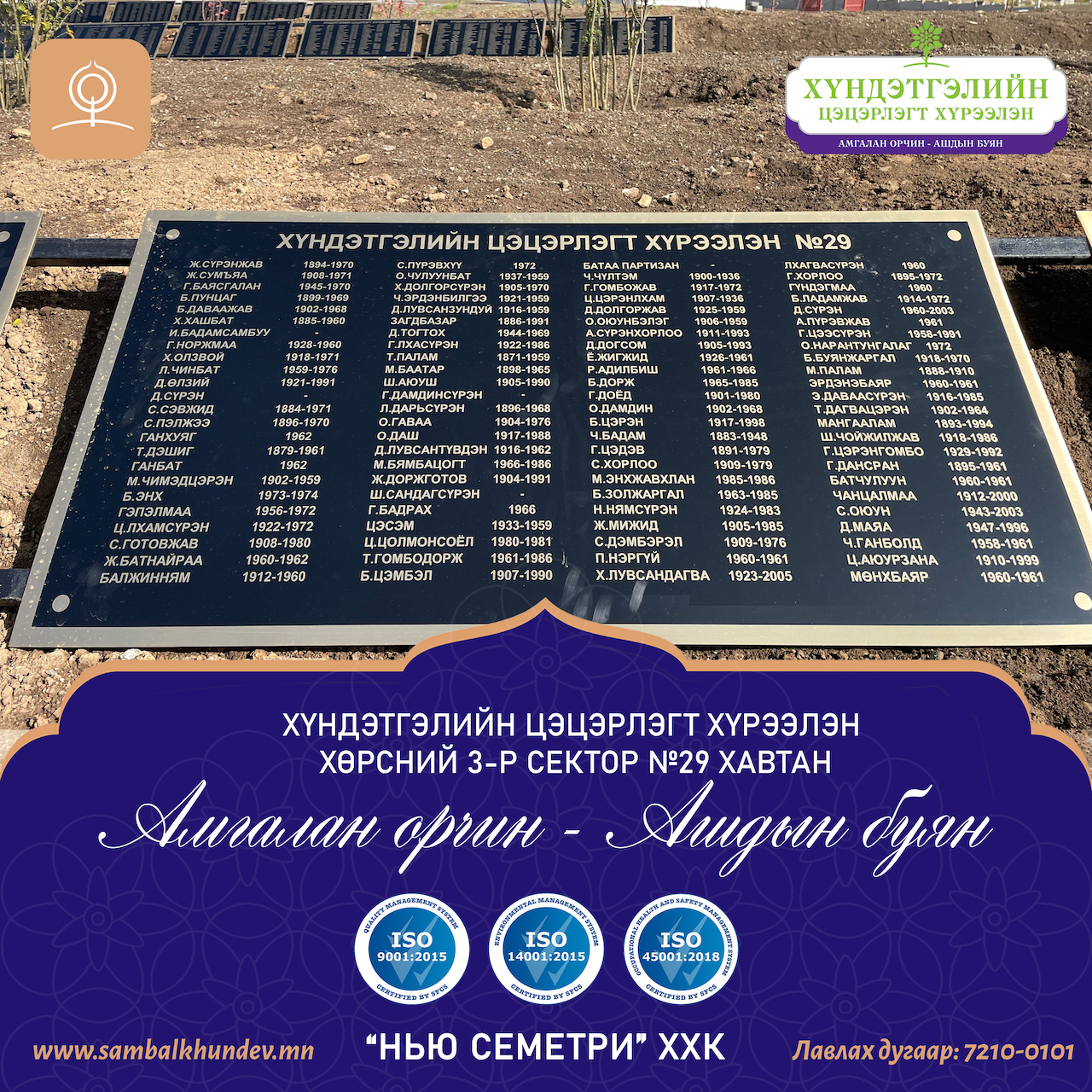 САМБАЛХҮНДЭВ БУЮУ 70 ДАВХРЫН ОРШУУЛГЫН ГАЗАРТ БҮТЭЭН БАЙГУУЛЖ БУЙ ХҮНДЭТГЭЛИЙН ЦЭЦЭРЛЭГТ ХҮРЭЭЛЭНГИЙН ХӨРСНИЙ СЕКТОРТ ХҮНДЭТГЭН ЗАЛСАН БУРХАН БОЛОГСДЫН НЭРСИЙГ БҮРЭН БАЙРЛУУЛЖ ДУУСЛАА.