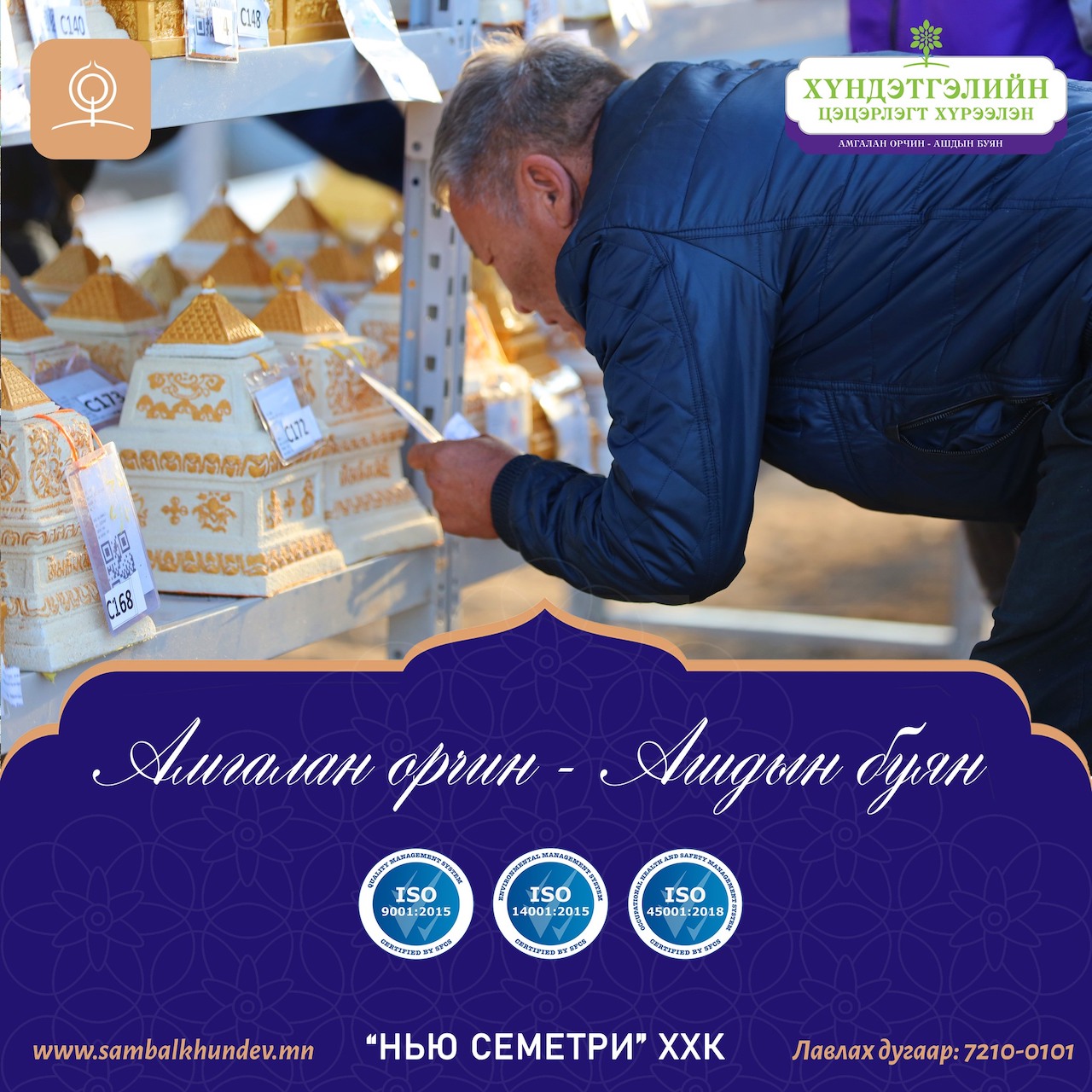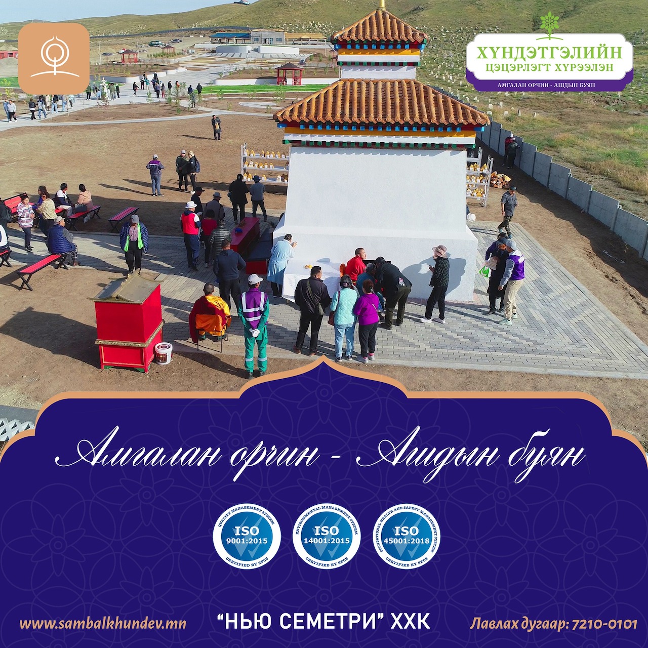 Чингэлтэй дүүрэг Самбалхүндэв буюу хүмүүсийн хэлж заншсан 70 давхрын оршуулгын газарт бүтээн байгуулагдаж буй “Хүндэтгэлийн цэцэрлэгт хүрээлэн”-ийн талбайд бурхан болоочдын чандар шүтээнийг залж мөнхжүүлэх ажил 2023 оны 09 сарын 09-ны билэгт сайн өдөр хийгдлээ.